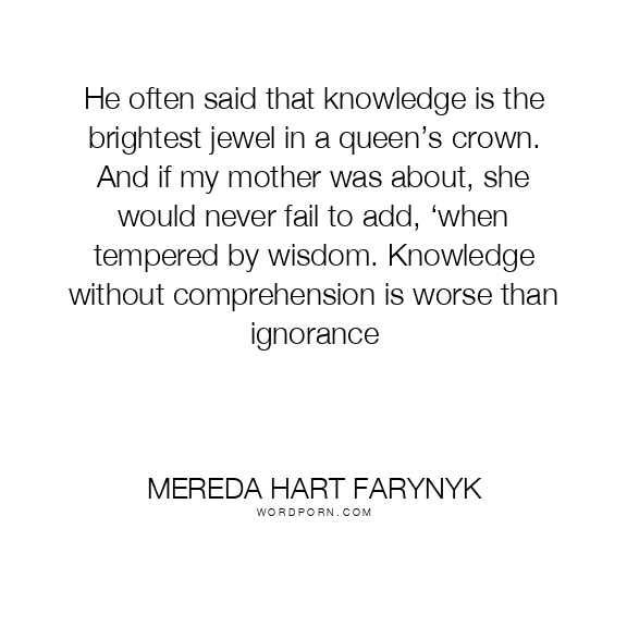 He often said that knowledge is the brightest jewel in a queen’s crown. And if my mother was about, she would never fail to add, ‘when tempered by wisdom. Knowledge without comprehension is worse than ignorance