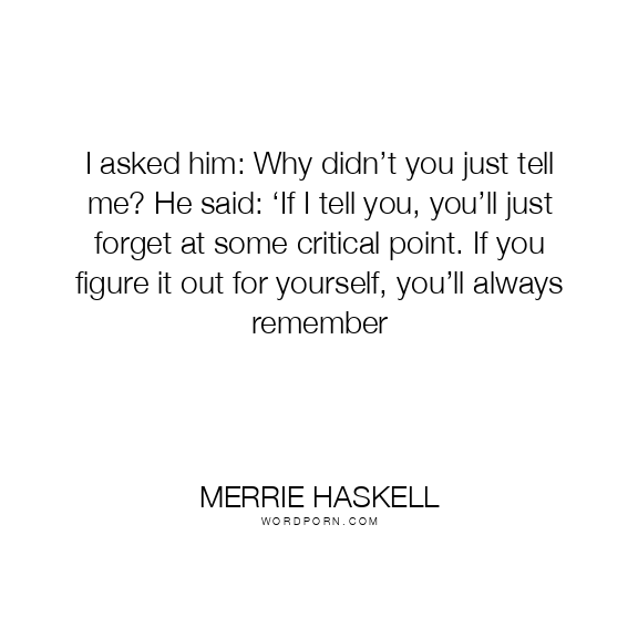 I asked him: Why didn’t you just tell me? He said: ‘If I tell you, you’ll just forget at some critical point. If you figure it out for yourself, you’ll always remember