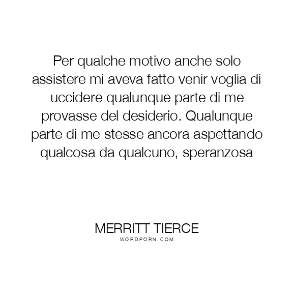 Per qualche motivo anche solo assistere mi aveva fatto venir voglia di uccidere qualunque parte di me provasse del desiderio. Qualunque parte di me stesse ancora aspettando qualcosa da qualcuno, speranzosa