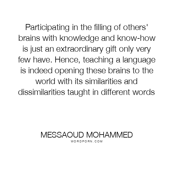 Participating in the filling of others' brains with knowledge and know-how is just an extraordinary gift only very few have. Hence, teaching a language is indeed opening these brains to the world with its similarities and dissimilarities taught in different words