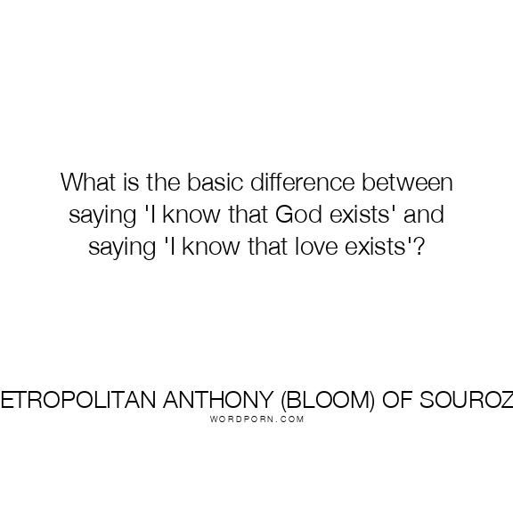 Copy Image What is the basic difference between saying 'I know that God exists' and saying 'I know that love exists'? Moms Typewriter A A SAVE THIS IMAGE
