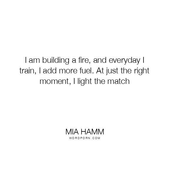 I am building a fire, and everyday I train, I add more fuel. At just the right moment, I light the match
