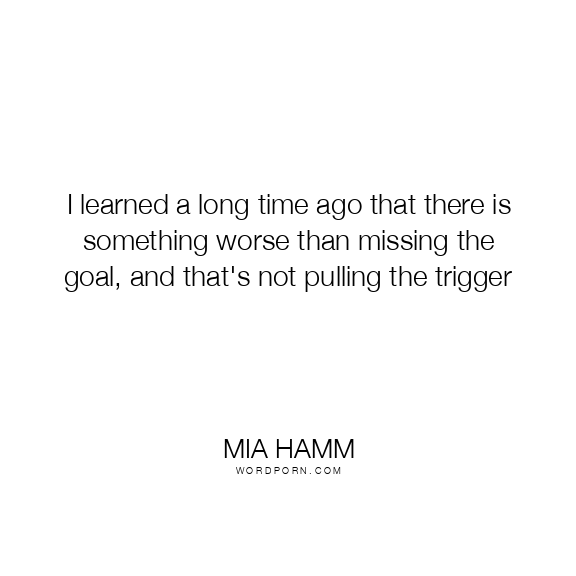 I learned a long time ago that there is something worse than missing the goal, and that's not pulling the trigger