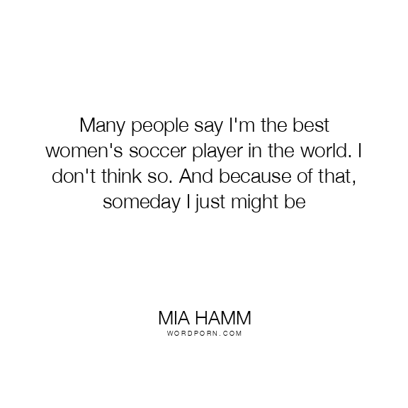 Many people say I'm the best women's soccer player in the world. I don't think so. And because of that, someday I just might be