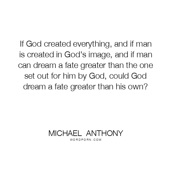 If God created everything, and if man is created in God's image, and if man can dream a fate greater than the one set out for him by God, could God dream a fate greater than his own?