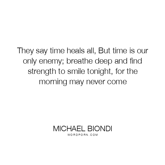 Copy Image They say time heals all, But time is our only enemy; breathe deep and find strength to smile tonight, for the morning may never come Moms Typewriter A A SAVE THIS IMAGE