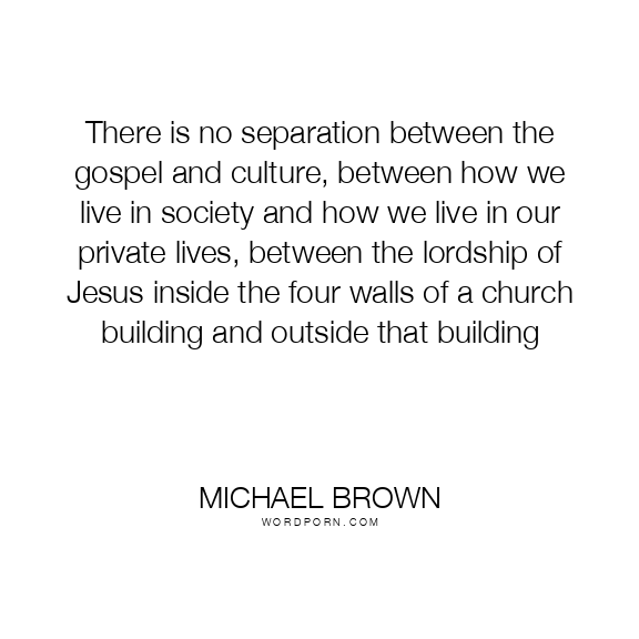 There is no separation between the gospel and culture, between how we live in society and how we live in our private lives, between the lordship of Jesus inside the four walls of a church building and outside that building