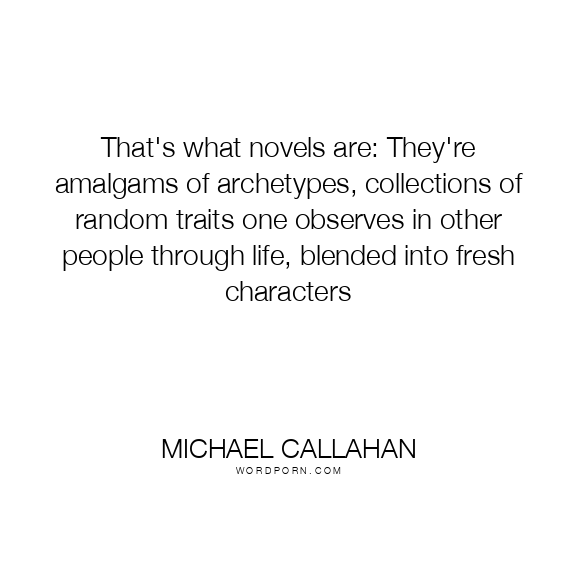That's what novels are: They're amalgams of archetypes, collections of random traits one observes in other people through life, blended into fresh characters