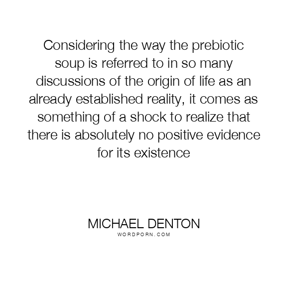 Considering the way the prebiotic soup is referred to in so many discussions of the origin of life as an already established reality, it comes as something of a shock to realize that there is absolutely no positive evidence for its existence