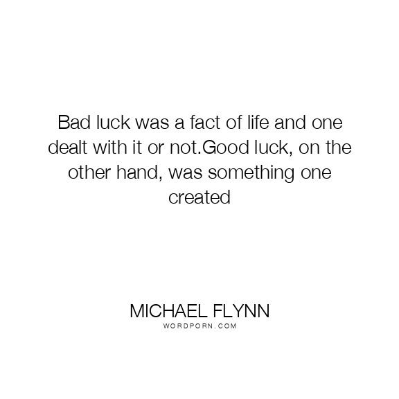 Bad luck was a fact of life and one dealt with it or not.Good luck, on the other hand, was something one created