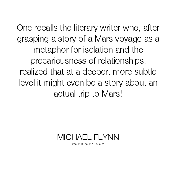 One recalls the literary writer who, after grasping a story of a Mars voyage as a metaphor for isolation and the precariousness of relationships, realized that at a deeper, more subtle level it might even be a story about an actual trip to Mars!