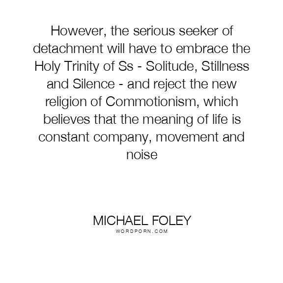 However, the serious seeker of detachment will have to embrace the Holy Trinity of Ss - Solitude, Stillness and Silence - and reject the new religion of Commotionism, which believes that the meaning of life is constant company, movement and noise