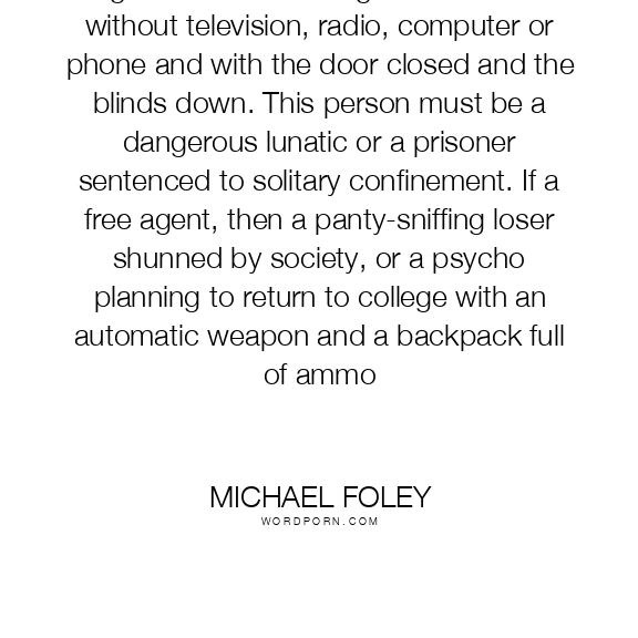 Imagine someone sitting alone in a room without television, radio, computer or phone and with the door closed and the blinds down. This person must be a dangerous lunatic or a prisoner sentenced to solitary confinement. If a free agent, then a panty-sniffing loser shunned by society, or a psycho planning to return to college with an automatic weapon and a backpack full of ammo