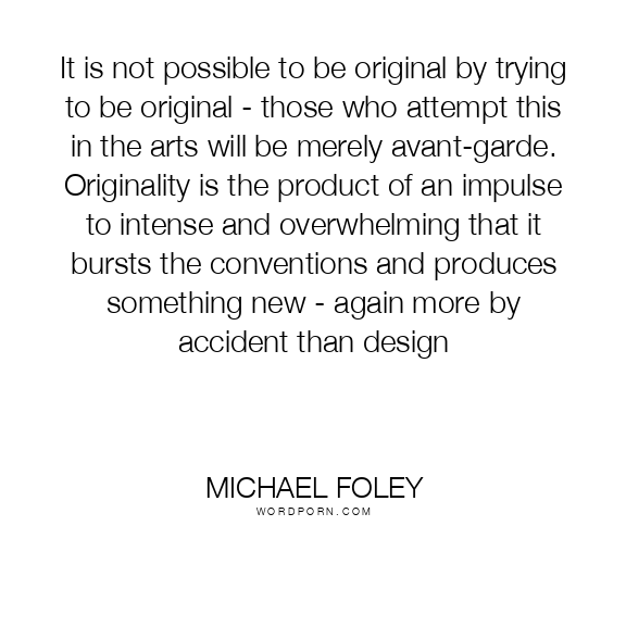 It is not possible to be original by trying to be original - those who attempt this in the arts will be merely avant-garde. Originality is the product of an impulse to intense and overwhelming that it bursts the conventions and produces something new - again more by accident than design