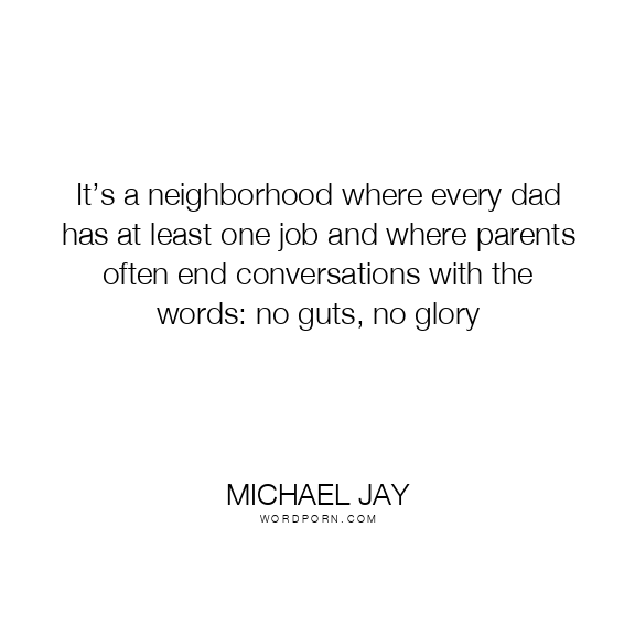 It’s a neighborhood where every dad has at least one job and where parents often end conversations with the words: no guts, no glory