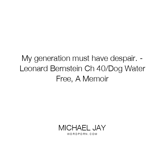 My generation must have despair. - Leonard Bernstein Ch 40/Dog Water Free, A Memoir