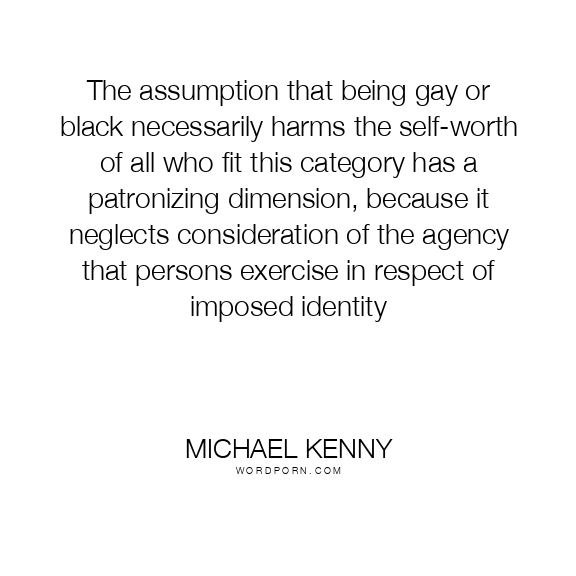 The assumption that being gay or black necessarily harms the self-worth of all who fit this category has a patronizing dimension, because it neglects consideration of the agency that persons exercise in respect of imposed identity