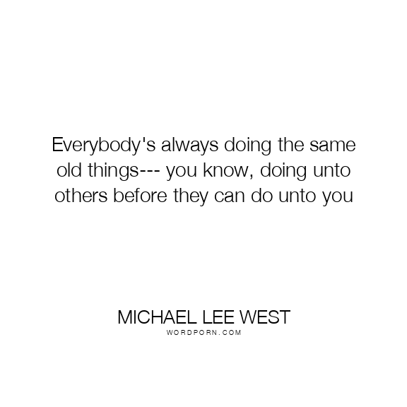 Everybody's always doing the same old things--- you know, doing unto others before they can do unto you