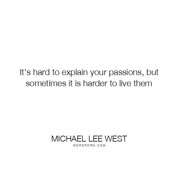 It's hard to explain your passions, but sometimes it is harder to live them