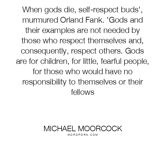 When gods die, self-respect buds', murmured Orland Fank. 'Gods and their examples are not needed by those who respect themselves and, consequently, respect others. Gods are for children, for little, fearful people, for those who would have no responsibility to themselves or their fellows