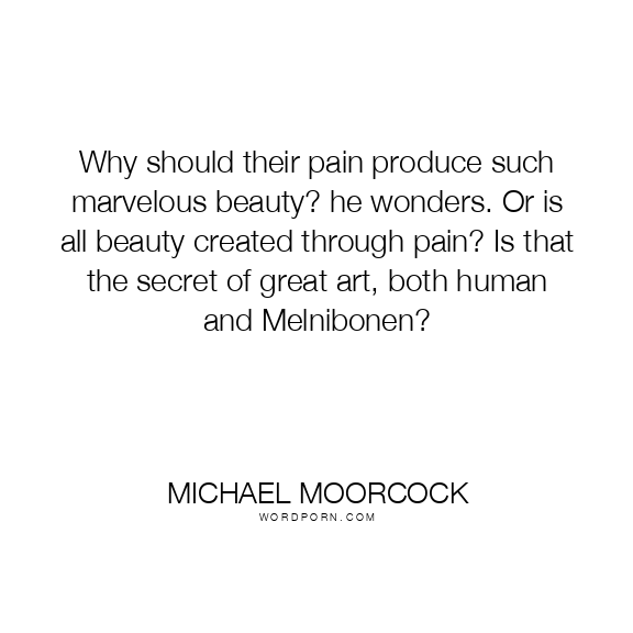 Why should their pain produce such marvelous beauty? he wonders. Or is all beauty created through pain? Is that the secret of great art, both human and Melnibonen?