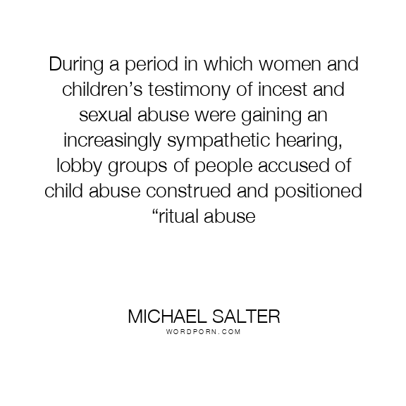 During a period in which women and children’s testimony of incest and sexual abuse were gaining an increasingly sympathetic hearing, lobby groups of people accused of child abuse construed and positioned “ritual abuse