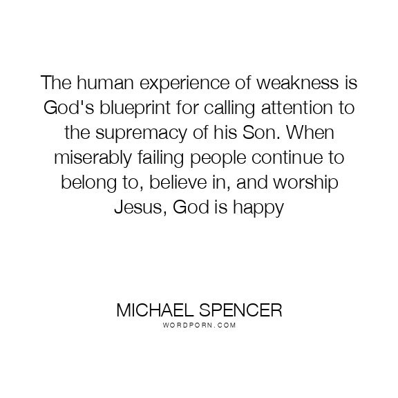 The human experience of weakness is God's blueprint for calling attention to the supremacy of his Son. When miserably failing people continue to belong to, believe in, and worship Jesus, God is happy