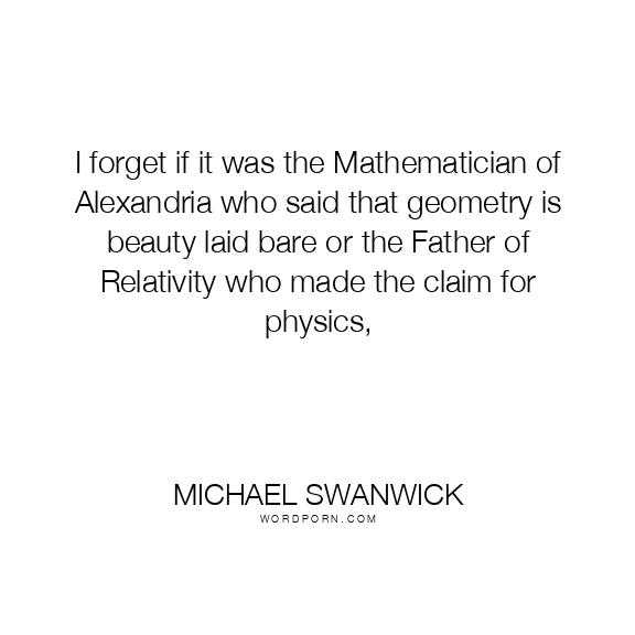 I forget if it was the Mathematician of Alexandria who said that geometry is beauty laid bare or the Father of Relativity who made the claim for physics,