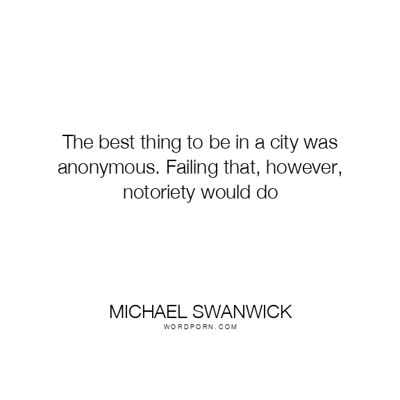 The best thing to be in a city was anonymous. Failing that, however, notoriety would do
