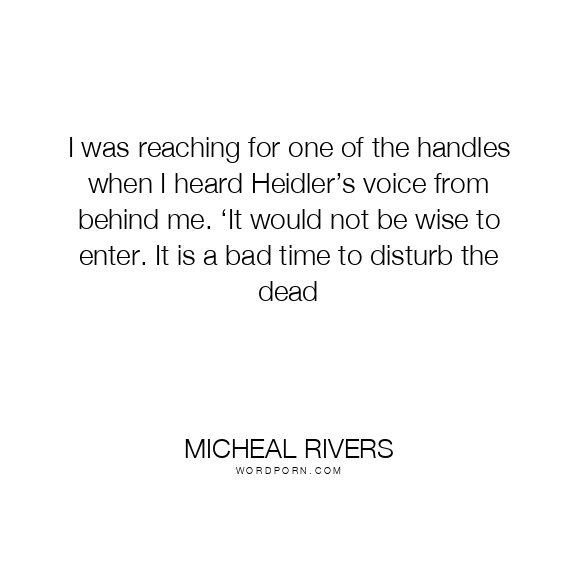 I was reaching for one of the handles when I heard Heidler’s voice from behind me. ‘It would not be wise to enter. It is a bad time to disturb the dead