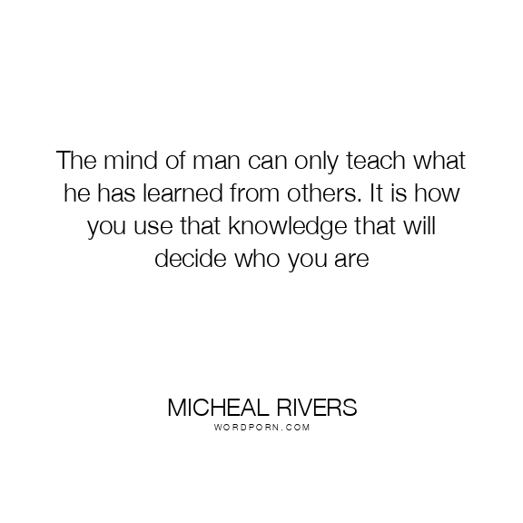 The mind of man can only teach what he has learned from others. It is how you use that knowledge that will decide who you are