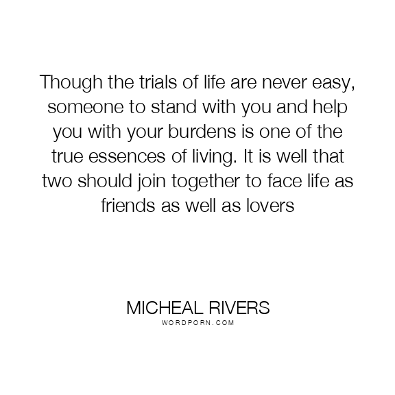 Though the trials of life are never easy, someone to stand with you and help you with your burdens is one of the true essences of living. It is well that two should join together to face life as friends as well as lovers