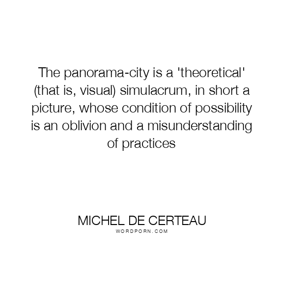 The panorama-city is a 'theoretical' (that is, visual) simulacrum, in short a picture, whose condition of possibility is an oblivion and a misunderstanding of practices