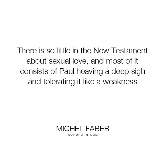 There is so little in the New Testament about sexual love, and most of it consists of Paul heaving a deep sigh and tolerating it like a weakness