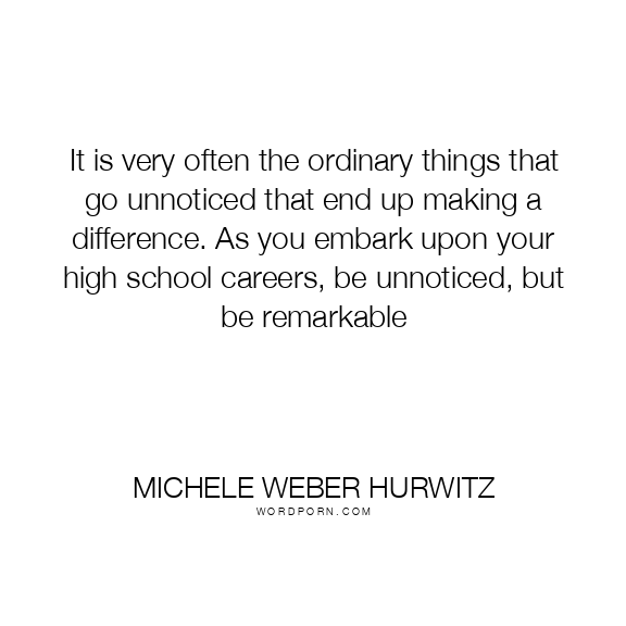 It is very often the ordinary things that go unnoticed that end up making a difference. As you embark upon your high school careers, be unnoticed, but be remarkable
