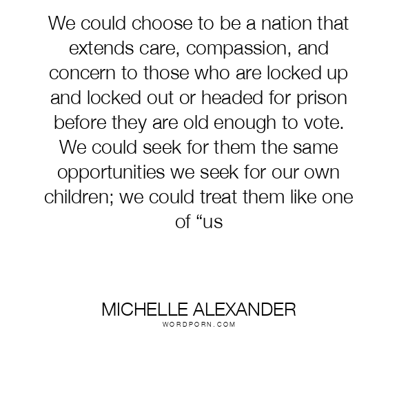 We could choose to be a nation that extends care, compassion, and concern to those who are locked up and locked out or headed for prison before they are old enough to vote. We could seek for them the same opportunities we seek for our own children; we could treat them like one of “us