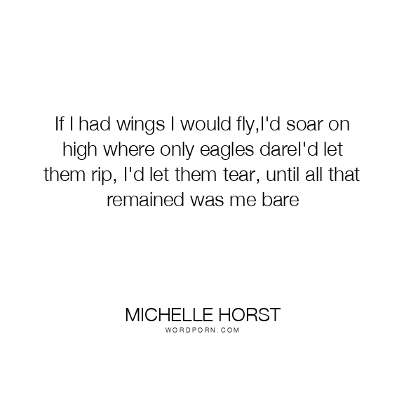 If I had wings I would fly,I'd soar on high where only eagles dareI'd let them rip, I'd let them tear, until all that remained was me bare