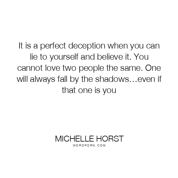 It is a perfect deception when you can lie to yourself and believe it. You cannot love two people the same. One will always fall by the shadows…even if that one is you