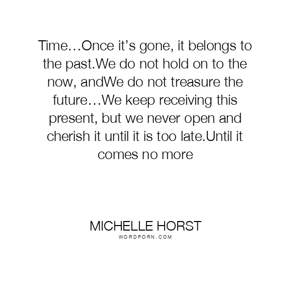 Time…Once it’s gone, it belongs to the past.We do not hold on to the now, andWe do not treasure the future…We keep receiving this present, but we never open and cherish it until it is too late.Until it comes no more
