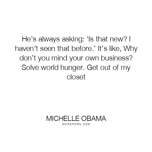 He’s always asking: ‘Is that new? I haven’t seen that before.’ It’s like, Why don’t you mind your own business? Solve world hunger. Get out of my closet
