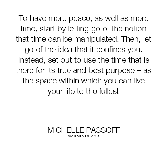 To have more peace, as well as more time, start by letting go of the notion that time can be manipulated. Then, let go of the idea that it confines you. Instead, set out to use the time that is there for its true and best purpose – as the space within which you can live your life to the fullest