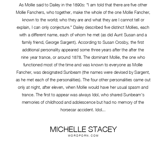 Michelle Stacey quote. As Mollie said to Dailey in the 1890s: