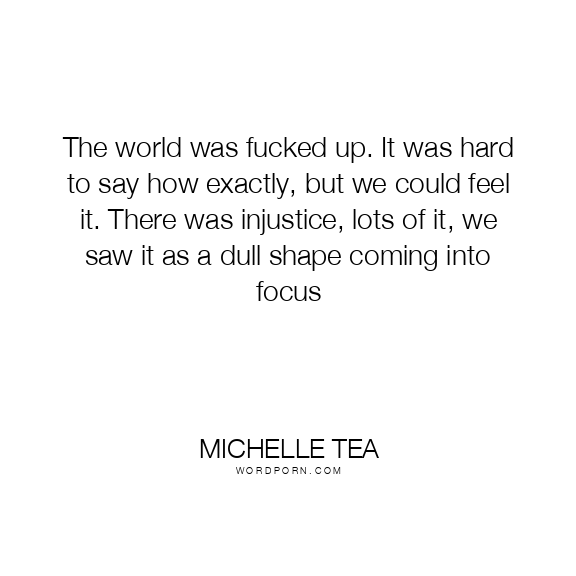 The world was fucked up. It was hard to say how exactly, but we could feel it. There was injustice, lots of it, we saw it as a dull shape coming into focus
