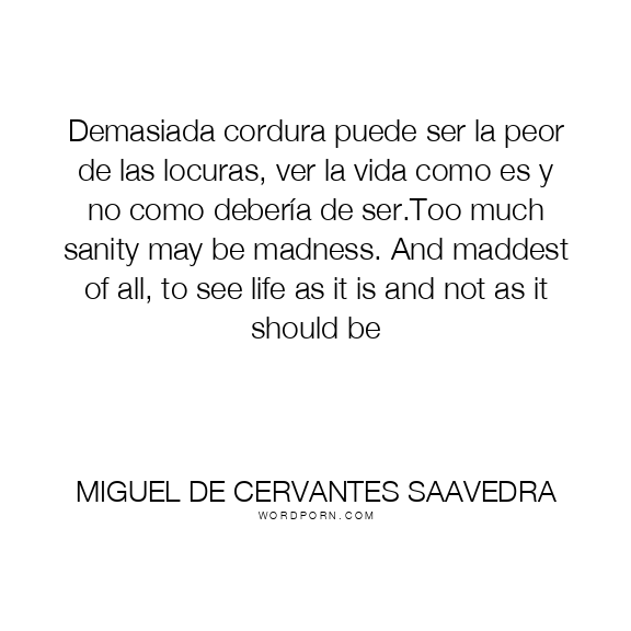 Demasiada cordura puede ser la peor de las locuras, ver la vida como es y no como debería de ser.Too much sanity may be madness. And maddest of all, to see life as it is and not as it should be
