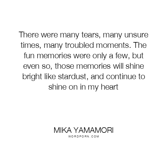 There were many tears, many unsure times, many troubled moments. The fun memories were only a few, but even so, those memories will shine bright like stardust, and continue to shine on in my heart