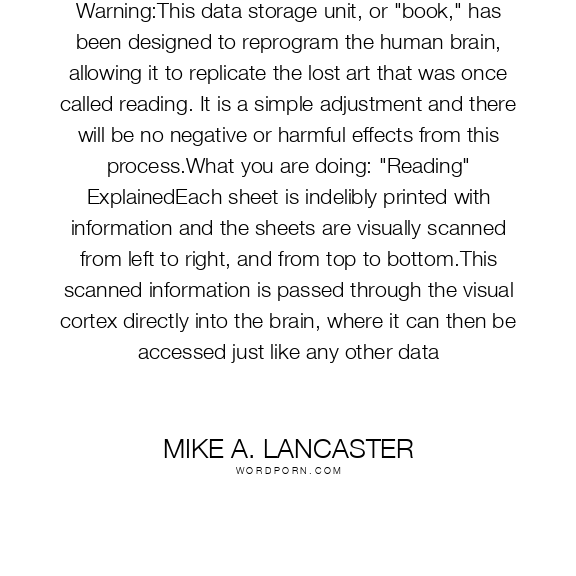 Mike A. Lancaster quote. Warning:This data storage unit, or
