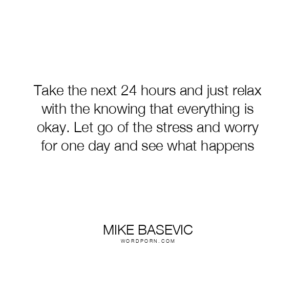 Take the next 24 hours and just relax with the knowing that everything is okay. Let go of the stress and worry for one day and see what happens