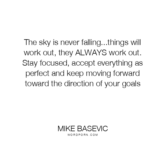 The sky is never falling...things will work out, they ALWAYS work out. Stay focused, accept everything as perfect and keep moving forward toward the direction of your goals