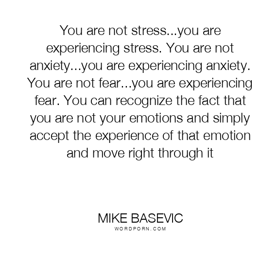 You are not stress...you are experiencing stress. You are not anxiety...you are experiencing anxiety. You are not fear...you are experiencing fear. You can recognize the fact that you are not your emotions and simply accept the experience of that emotion and move right through it