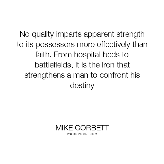 No quality imparts apparent strength to its possessors more effectively than faith. From hospital beds to battlefields, it is the iron that strengthens a man to confront his destiny